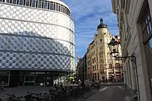 Wagner's birthplace was demolished in 1886, three years after his death, and the site was later occupied by a seven-storey department store, built in 1908. The appearance of the department store changed radically in 1968 when it was coated with a paraboloid-patterned aluminium façade, designed by Harry Müller. The striking metal surface earned this building the nickname Blechbüchse ("tin can").