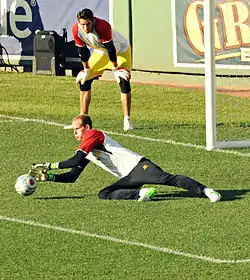 He made his first senior international start on 2 June 2007 against Uruguay. He was at fault for Australia losing that match after dropping a routine catch allowing Alvaro Recoba to score an easy goal.[36][37] He was part of Australia's début campaign in the 2007 AFC Asian Cup, but he did not feature in any of their matches. Additionally, he was selected as one of the three goalkeepers in Australia's final 23-man squad for the 2010 FIFA World Cup,[38] but he left the squad to return to his family following news of his son being diagnosed with leukemia[39] and he did not return to the tournament.[40]