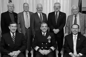 ![]() Several former United States Chiefs of Naval Research photographed in 2005. Back: L. S. Kollmorgen, Brad Mooney, Dick Van Orden, Albert Baciocco, R. K. Geiger. Front: Paul Gaffney, Jay Cohen, William Miller. | |
