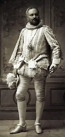 The Bradley-Martin Ball was a lavish costume ball at the Waldorf Hotel in New York City on the night of February 10, 1897. Cornelia Bradley-Martin, wife of Bradley Martin, organized the ball. Eight hundred socialites spent about $400,000 imitating kings and queens.[1] Bradley-Martin's stated intention was to create an economic stimulus for New York City, which was at the end of the Long Depression which began in 1873 and included the Panic of 1893. The Bradley-Martins spent approximately $9.7 million in today's money to throw the ball. Across the country, preachers and editorial writers argued over the propriety of a party that would cost hundreds of thousands of dollars. In the end, the ball was a social triumph but created negative publicity.[2]