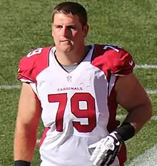 He appeared in all 16 of the regular season games on special teams and started the last 12 games of the regular season at left tackle.[8] He struggled throughout his first season in Arizona and was rated 76th out of 76 tackles that qualified by Pro Football Focus.[9]
