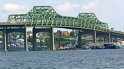 The Charles M. Braga Jr. Memorial Bridge, also known as the Braga Bridge, is a through truss bridge that carries Interstate 195 over the Taunton River between the town of Somerset and the city of Fall River, near the mouth of the Quequechan River at the confluence with Mount Hope Bay. At just over a mile long, it is one of the longest bridges in Massachusetts. Opened to traffic on April 15, 1966,[2] it provides an important link between Providence, Rhode Island, New Bedford, and Cape Cod.