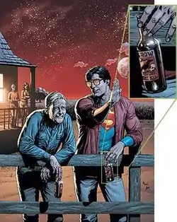 The penultimate issue of the series, Action Comics #869, was recalled at the retailer level by DC Comics for cover content. The original cover depicted Clark and his adoptive father outside the Kent farmhouse apparently holding what may be beer.