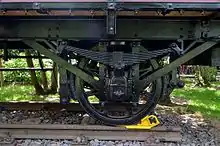 A brake shoe can be put on the track to stop a moving car. The wheel rolls up to the tongue and then the brake shoe glides with the car on the track until it stops. They are also called rail skids or rail skates.