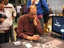 Bram Snepvangers (born 1976) is a Dutch Magic: The Gathering player. He is now considered retired, but has been on and off the Pro Tour for twelve years. In addition to his success playing Magic, he is known as a community builder both as a judge and a tournament organiser. Each year he hosts an invitational tournament for Dutch players called Bramvitational.[7] Along with Willam "Huey" Jensen and Brad Nelson, Snepvangers is one of only three players to have eliminated Kai Budde in the knock-rounds of a Pro Tour. He qualified for every Pro Tour event held in the decade of the 2000s, and participated in all but one of them. He is second only to Raphaël Lévy on the list of players with the most Pro Tour appearances.