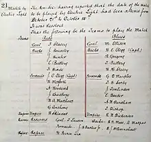 - 1878: First floodlit game played between "Reds" and "Blues" (the first competitive floodlit game was held at Mansfield Town's Field Mill ground).