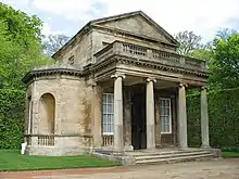 The Open Temple was probably constructed in the early 18th century in Magnesian limestone ashlar and was built in a classical style as a single cell with a pedimented 3-bay facade.[10]