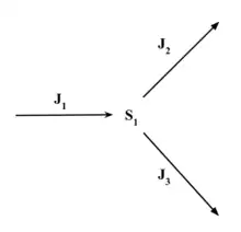 Shown to the right is a simple branched pathway with one producing reaction and two consuming reactions. If we assume the pathway is at steady state then conservation of mass means that: