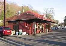 Ridgefield opened in 1852 as an original station on the Danbury and Norwalk Railroad. The name was changed to Branchville upon the 1870 opening of the Ridgefield Branch. A new station building was built around 1887 and served until the current station house was built in 1905.[4] The building is currently occupied by the Whistle Stop Bakery, which opened in the 1980s.[5] The Ridgefield Branch was used for passenger service until 1925 and for freight service until 1964.[6][7]