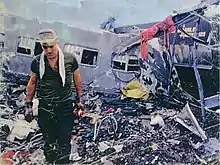 The Luciérnaga entered to a curve near the bridge over Samborombón River. Due to the high speed, the passenger train could not stop on time, crashing the tank railcar that was on the track.[3] Due to the strong impact, the diesel locomotive overturned while the wagons were stacked upon each other. The crash caused the death of 34 people and 74 injured.[4]