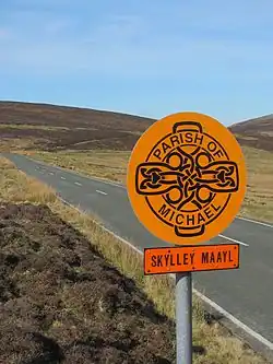 The Brandywell Corner, previously the 'Mountain Gate,'[21] Iron Gate,[22] or 'Brandywell Gate'[23] is the site of a former parish boundary marker cairn and gates for the Crown Commons land of Beinn-y-Phott mountain. It is located between the 6th Milestone and 7th Milestone road-side markers on the primary A18 Snaefell Mountain Road and with the road junction with the secondary B10 Beinn-y-Phott road or Brandywell Road in the parish of Kirk Lonan with the adjoining boundary-line for the parishes of Kirk Braddan and Christ Kirk Lezayre in the Isle of Man.[24] The Brandywell Road junction with the A18 Snaefell Mountain Road is the site of an Isle of Man TT Marshal communication shelter.[25]