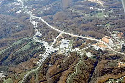 Branson West Airport,[10] also known as Branson West Municipal Airport,[11][12] is a city-owned, public-use airport located two nautical miles (3.7 km) west of the central business district of the Branson West.[10] The airport is also known as Emerson Field, named for Robert Emerson, an aviator and former owner of the property.[12]