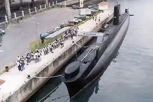 Riachuelo was ordered in 1972, separately from her two sister boats.[1] The submarine, built by Vickers Shipbuilding and Engineering at their shipyard in Barrow, was laid down on 26 May 1973, and launched on 6 September 1975.[1] She was commissioned into the Brazilian Navy in early 1977.[1]