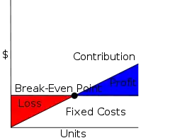 The break-even point (BEP) in economics, business—and specifically cost accounting—is the point at which total cost and total revenue are equal, i.e. "even". There is no net loss or gain, and one has "broken even", though opportunity costs have been paid and capital has received the risk-adjusted, expected return. In short, all costs that must be paid are paid, and there is neither profit nor loss.[1][2] The break-even analysis was developed by Karl Bücher and Johann Friedrich Schär.