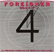 "Break It Up" was the fourth single taken from the album 4 by the band Foreigner. The song was written by Mick Jones and the first to feature a B-side that was not available on one of their albums, a live version of their hit, "Head Games."
