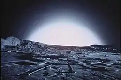Simmonds confidently declares the situation to be under control, suggesting they draft a communiqué to the Space Commission to dispel any doubts. An exasperated Koenig tries to give the politician a reality check when the magnetic field surges off the scale. Energy discharges shoot from the open waste pits. An ever-growing chain reaction of explosions obliterates Area Two and spreads to the waste canisters strewn over the lunar surface. Only those Eagles not over the site escape destruction. In mere seconds, the entire area erupts in a colossal fireball that rocks the entire Moon.