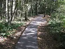 As the name suggests, it includes an area of marshland, but also a wet alder valley wood and former birch coppice.[4][5] It is said to be "a representative example of a wet valley alderwood and associated flood plain fen communities and is the most diverse example known in the county".[4] Wooden walkways are provided over marshy areas. It is part of the Leeds Country Way and the north end of the Meanwood Valley Trail.