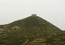 Mamelon (from French "nipple") is a French name for a breast-shaped hillock.[9] Fort Mamelon was a famous hillock fortified by the Russians and captured by the French as part of the Siege of Sevastopol during the Crimean War of the 1850s. The word mamelon is also used in volcanology to describe a particular rock formation of volcanic origin. The term was coined by the French explorer and naturalist Jean Baptiste Bory de Saint-Vincent.[10]