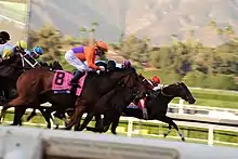 The 2018 event was held at Churchill Downs. For the 2018 event, the Friday card was known as "Future Stars Friday" and featured five races for two-year-olds, including the new Breeders' Cup Juvenile Turf Sprint. The Distaff moved back to the Saturday card.[27] Additional Breeders' Cup changes arrived with the Breeders' Cup Future Wager,[28][29] similar to the Kentucky Derby Future Wager,[30] and the first time the Equestrian event which was intermingled with Breeders' Cup and Churchill Downs activities.[31]