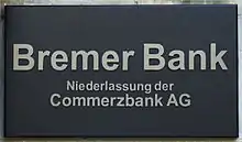 - "Bremer Bank wird Commerzbank". Weser Kurier. 24 March 2010. Retrieved 1 May 2018.