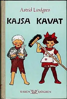 The story was first published in 1949 in the Swedish magazine Vi, illustrated by Ingrid Vang Nyman. In 1950 it was included in a novel collection called Kajsa Kavat. Later it was published as a picture book on its own, illustrated by Ilon Wikland. It was translated into many languages, among them English[1][2][3] and German.[4] While the Swedish name of the girl is Kasja Kavat, she has a different name in other countries: Brenda Brave (English), Greta Grintosa (Italian)[5] and Polly Patent (German).