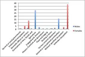 The occupational structure in 1881 was somewhat different from the present. A large number of females' occupation was unknown, however, more females than men had professional occupations, including subordinate medical service and schoolmaster. Also more females were employed in domestic offices or services. In 1881, Brent Eleigh relied heavily on the agriculture sector as a main source of income.[8] Brent Eleigh's rural location is a reason for the reliance on the agricultural sector.[9]