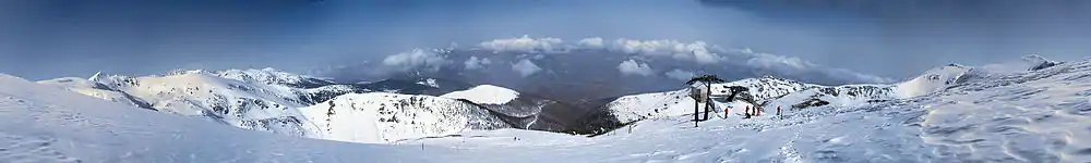 Brezovica ski resort or Brezovica ski center (Albanian: Qendra e Skijimit Brezovicë, Serbian: Ски центар Брезовица, romanized: Ski centar Brezovica), is a mountain resort and the largest center of winter tourism in Kosovo.[lower-alpha 1] Located on the slopes of Šar Mountains, it is mainly a destination for skiing and snowboarding. In the summer, eco-tourism opportunities include hiking, mountain biking, golf, and other outdoor recreational activities. Hiking paths can lead the visitors to the nearby Livadh Lake.
