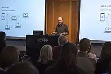 Brian House (born Denver, Colorado) is a new media and sound artist. House's early projects were formative examples of locative media art and digital media in social practice.[1][2] His subsequent projects have focused on sound and data sonification in relation to nature and technology.[3] His work has appeared in numerous exhibitions around the world, including at the Museum of Modern Art, the Museum of Contemporary Art, Los Angeles, Ars Electronica and ZKM Center for Art and Media.