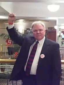![]() Brian Moore in an official campaign photo after being selected as the Socialist Party USA Presidential nominee on October 20, 2007. | |