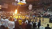 Opened 66 years ago in 1957 as the MSC Fieldhouse,[7] it was named for longtime basketball coach John "Brick" Breeden in 1981.[8] The main arena was named Worthington Arena in 1985 in honor of Max Worthington, a starting guard on Montana State's 1928-29 national championship team.[9] Both were members of the 1929 "Golden Bobcats" basketball team,[8] named national champions by the Helms Foundation. Breeden later coached the Bobcats basketball team and served as athletic director, and Worthington, also a former coach, served as a school administrator and longtime booster.[8][9]