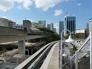 Brickell station is a Metrorail rapid transit station in Miami, Florida, serving the system's Green and Orange Lines. One of the core stations of Miami's public transport network, it serves the financial district of Brickell. Combined, the Metrorail and Metromover station complex at Brickell sees roughly 8,430 boardings each weekday, making it the system's second-busiest station.[1]