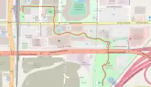 ![]() Location within Bricktown with the canal route highlighted in red | |