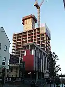 The building was constructed by the Watkins Jones Group of Bangor in north Wales between 5 September 2016 and 31 August 2018.[1] It was designed by Rio Architects of Cardiff. The associated archaeological work was undertaken by Rubicon Heritage Services. The Bridge Street Exchange is the tallest building in Cardiff, beating the previous record holder of Capital Tower, which had held the record since 1970.