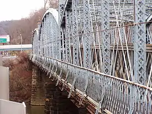 - Betty J. Pokas (September 12, 2011). "Long-Standing Bridgeport Bridge Razed Today". Wheeling News-Register. Archived from the original on December 9, 2011. Retrieved September 14, 2011.