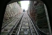 The Bridgnorth Cliff Railway, also known as the Bridgnorth Funicular Railway or Castle Hill Railway, is a funicular railway in the town of Bridgnorth in the English county of Shropshire. The line links the Low Town of Bridgnorth, adjacent to the River Severn, with the High Town, adjacent to the ruins of Bridgnorth Castle.