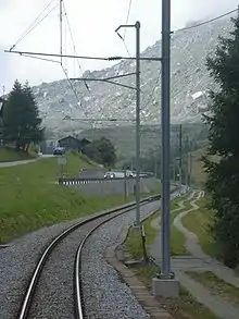 The Brig–Zermatt railway line is a metre gauge railway line in the canton of Valais in Switzerland. Its 44-kilometre (27 mi)-long line links the communities of Brig and Visp in the Rhone Valley with Täsch and the car free holiday resort of Zermatt in the Mattertal. The line also forms part of the much travelled and admired route of the Glacier Express between St. Moritz and Zermatt. The Gornergratbahn (which was opened in 1898) is connected with the line at Zermatt.