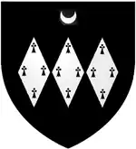 The family of FitzWarin (alias FitzWarren) appears to be the earliest recorded holder of the manor of Brightley, in the 12th century.[5] The family was a branch of the FitzWarin family, powerful Welsh Marcher Lords of Whittington Castle, Shropshire and of Alveston, Gloucestershire, which shares very similar arms. The Devon historian Tristram Risdon (died 1640) stated that Brightley became the residence of William Filius Warini (i.e. Latin for "son of Warin", French fils de contracted to fitz) in the reign of King Richard I (1189–1199), and stated him to be the son of "Fulk FitzWarren", who had inherited it from his father in the time of King Henry II (1154–1189).[2] A similar account is given by Risdon's contemporary Sir William Pole (died 1635) who stated: "William, sonne of Fulk Fitzwarren, receyved this land from his father in Kinge Henry 2 tyme" (i.e. between 1154 and 1189). The family then took the surname "de Brightley" and adopted a simplified, differenced version of the FitzWarin paternal arms, and several of that family named William succeeded one another for several generations at Brightley. One William de Brightley was Knight of the Shire in 1365. The senior line of FitzWarin became Barons FitzWarin in 1295 and were also from 1382[lower-alpha 3] feudal barons of Bampton, Devon and from 1391 co-heirs to the lands of the feudal barony of Barnstaple, Devon.[lower-alpha 4] The title Baron FitzWarin[6] and the feudal barony of Bampton and their share of the feudal barony of Barnstaple passed in the 15th century to their descendants the Bourchier family which made its principal residence at Tawstock in Devon, ancient seat of the barons of Barnstaple,[lower-alpha 5] about 6 miles north-west of Brightley. The Bourchiers were created Earls of Bath in 1536, and were highly influential in Devon. According to Risdon, Brightley passed from the de Brightley family via the family of Carew to the family of Coblegh.