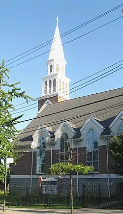 ![]() Newer structure, which replaced the original burned church | |