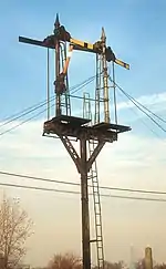 At its peak the crossing involved a total of 8 tracks of the PRR, B&OCT and CR&I crossing the two tracks of the C&A. Also included in the complex were a number of hand-operated crossovers and wye tracks. Each of the 4 railroads involved in the crossing employed switchtenders on site to manage any crossover or connecting movements, with the PRR maintaining two tender stations, north and south of the crossing, to protect the two B&OCT to C&A wye tracks where they each crossed the Panhandle main line and the C&A crossing itself.[3] Switchtender cabin "A" managed the Alton crossing and would continue to do so until the crossing was interlocked in 2007.