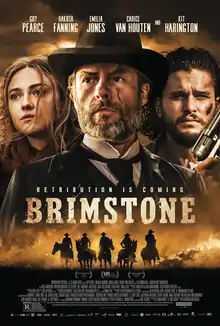 Brimstone is a 2016 psychological western film written and directed by Martin Koolhoven. The film stars Dakota Fanning, Guy Pearce, Emilia Jones, Kit Harington, and Carice van Houten.[4] It is a Dutch-American as well as French, German, Belgian and Swedish international production.