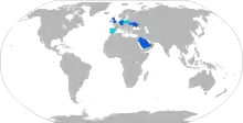 Around £10 million of Brimstones from the RAF stock were sold to the Royal Saudi Air Force for use on its Tornados. In April 2011, the RAF's Assistant Chief of the Air Staff Air Vice-Marshal Baz North reported that the missiles were "being sought by both the United States of America and the French" in the light of Brimstone's success in Libya.[58] France's DGA procurement agency held meetings in late May 2011 to discuss a lightweight air-to-surface weapon for the Dassault Rafale aircraft; Stéphane Reb of the DGA would merely say that "Brimstone is a solution, but it's not the only option". In early 2014 the US Congress' House Armed Services Committee showed interest again in the missile; high-ranking members of the US armed services have stated they "like it".[59] The French Air Force were still thinking about a purchase in March 2012, with a prime consideration being lower collateral damage[60] compared to the AASM missile. India made a request for information about integrating Brimstone on their Sukhoi Su-30MKI fighter fleet.[61] In July 2014, it was revealed that the United States Navy was studying the Dual Mode Brimstone for use on the Boeing F/A-18E/F Super Hornet aircraft.[62] The United States Army also considered the Brimstone as "an option" in its Joint Air-to-Ground Missile (JAGM) program,[63] but selected Lockheed Martin's dual-mode seeker upgrade for the Hellfire missile.[64] In September 2015, MBDA displayed the dual-mode Brimstone for the first time as a helicopter-mounted weapon to fulfill the British Army Air Corps' need for a future attack helicopter weapon for the AgustaWestland Apache.[65] In January 2016, it was reported that Germany was considering arming its newly leased Heron TP drones with Brimstone.[66] In March 2016, France was reportedly considering Brimstone for its Tiger attack helicopters.[67]