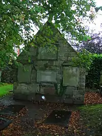 Built for the Shaws of Kelsoland, this category A listed building became the burial vault of the Brisbane family sometime after 1695. The date 1634 as inscribed on a heraldic datestone at the east side of the structure, above a sealed portal. A heraldic panel is inscribed with "P.S" and "I.S", indicating the Shaws of Kelsoland. An armorial device with mullets (stars) for the Shaw and annulets (rings) for the Montgomeries of Braidstone is present. A carved armorial device on the west side carries the initials "P.S./I.M./I.S".[1][2] Major-General Sir Thomas Makdougall Brisbane, 1st Baronet GCH, GCB, FRS, FRSE (23 July 1773 – 27 January 1860) a British soldier, colonial governor and astronomer, is interred within the aisle.