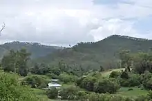 The Brisbane River East and West branches traditionally have their headwaters in the ranges east of Kingaroy.[10] The two branches merge into a single watercourse south of Mount Stanley. Using an alternative modern definition, the source is located at the top of Fig Tree Gully in the Bunya Mountains, which are the headwaters of the river's longest tributary Cooyar Creek. Water from the highest point in the catchment has fallen on the Bunya Mountains, 992m above sea level.