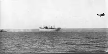 A successful torpedo drop required that the approach run to the target needed to be straight and at a speed and height where the torpedo would enter the water smoothly: too high or too low and the torpedo could "porpoise" (skip through the water), dive or even break up. Height over the water had to be judged without the benefit of a radio altimeter and misjudgement was easy, especially in calm conditions.[34] For the Beauforts using the 18-inch (450-mm) Mk XII aerial torpedo, the average drop-height was 68 ft (21 m) and the average range of release was 670 yd (610 m).[35] During the run-in, the aircraft was vulnerable to defensive anti-aircraft fire and it took courage to fly through it with no chance of evasive manoeuvres. The Beaufort's optimum torpedo dropping speed was a great deal higher than that of the Vildebeests it replaced, and it took practice to judge the range and speed of the target ship. A ship the size and speed of Scharnhorst would look huge, filling the windscreen at well over 1 mi (1.6 km) and it was easy to underestimate the range.[36] In action, torpedoes were often released too far away from the target, although there was one recorded instance of a torpedo being released too close.[37] For safety reasons, torpedo warheads had a set distance (usually about 300 yd (270 m) from the release point before they were armed. It also took some distance for the torpedo to settle to its running depth.[34] Once the torpedo had been dropped, if there was room, a sharp turn away from the enemy was possible: more often than not the aircraft had to fly around or over the ship, usually at full-throttle and below mast height. A sharp pull-up could be fatal as it exposed a large area of the aircraft to anti-aircraft guns.[38]