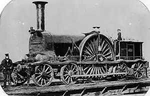 These two locomotives were built as replacements for more conventional 2-2-2 express passenger locomotives with 7-foot-6-inch (2.29 m) driving wheels and were given wheels of this same size, rather than the 9-foot-diameter (2.7 m) wheels of their 4-2-4T predecessors.