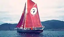 In the 1920s and 30s she was adapted for use as a power whelk trawler, and her interior later changed for use as a charter vessel.[10] She capsized and sank in 1968, after which she was sold, and then restored in Bristol.[11] From 1974 to 1997 [12] she operated as a charter yacht on the west coast of Scotland, after which she was taken to the Hamble, where she continued to offer sailing holidays.[13] In 1995 she was re-named Spirit of Britannia due to registry issues while chartering in the canaries. She was acquired by the Trinity Sailing Trust of Brixham in 2007, refitted in 2008, and in 2011 laid up due to the scarcity of charter work, during which time she was allowed to fall into substantial disrepair.[14] Since 2013 she has been undergoing restoration by the Britannia Sailing Trust in Winkleigh, mid-Devon.[15] [16] She will be relaunched in 2022, from which time she will be based in Cornwall, offering sailing experiences to the disadvantaged and campaigning for cleaner seas.