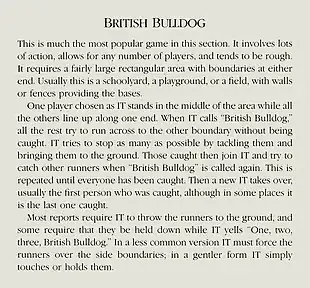 Caroline Sanderson: "British Bulldog"; The Games We Played.[2]