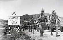 In 1941, during the Second World War, the British reached an agreement with the Chinese government under Generalissimo Chiang Kai-shek that if Japan attacked Hong Kong, the Chinese National Army would attack the Japanese from the rear to relieve pressure on the British garrison. On 8 December, the Battle of Hong Kong began when Japanese air bombers effectively destroyed British air power in one attack.[24] Two days later, the Japanese breached the Gin Drinkers Line in the New Territories. The British commander, Major-General Christopher Maltby, concluded that the island could not be defended for long unless he withdrew his brigade from the mainland. On 18 December, the Japanese crossed Victoria Harbour.[25] By 25 December, organised defence was reduced into pockets of resistance. Maltby recommended a surrender to Governor Sir Mark Young, who accepted his advice to reduce further losses. A day after the invasion, Chiang ordered three corps under General Yu Hanmou to march towards Hong Kong. The plan was to launch a New Year's Day attack on the Japanese in the Canton region, but before the Chinese infantry could attack, the Japanese had broken Hong Kong's defences. The British casualties were 2,232 killed or missing and 2,300 wounded. The Japanese reported 1,996 killed and 6,000 wounded.[26]