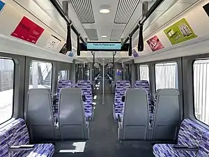 The 70 units are formed from a total of 630 carriages.[3][49] Like many other contemporary designs for commuter rolling stock, the trains feature open gangways between carriages. There are no toilets on board. Trains have a mix of longitudinal and transverse seating, all of which is standard class.