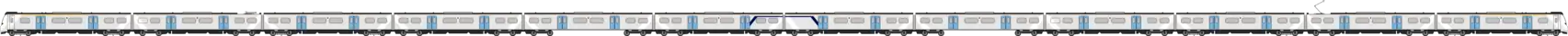There are 60 eight-car units and 55 twelve-car units.[66] Each is a fixed length continuously gangwayed vehicle.[3] The initial livery is "light grey with pastel blue doors and a white diagonal flash at the carriage ends".[3]